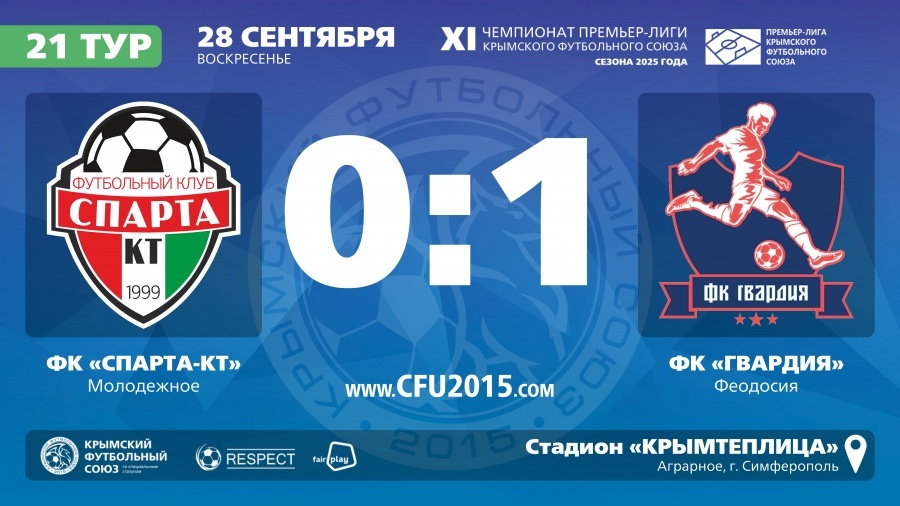 ФК "Спарта-КТ" (Молодежное) – ФК "Гвардия" (Феодосия) – 0:1. Протокольные данные