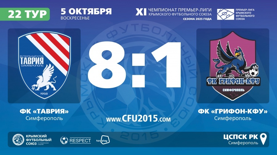ФК "Таврия" (Симферополь) – ФК "Грифон-КФУ" (Симферополь) – 8:1. Протокольные данные